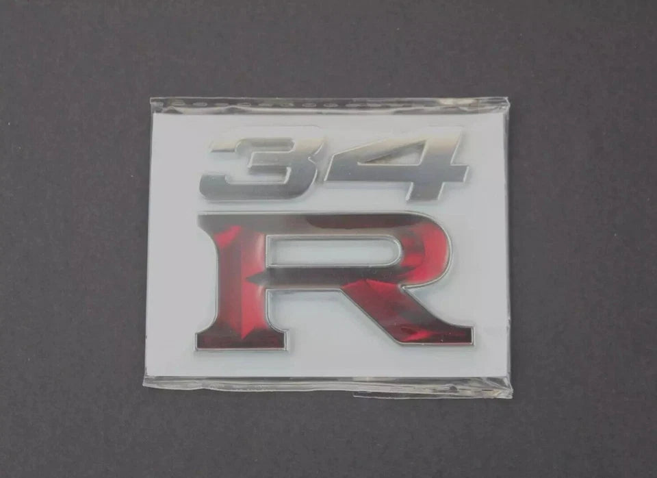 34R Grill & Boot Badge Emblem Silver Red for Nissan Skyline R34 GTR GTT GTST GT